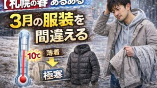 ひとりごと 札幌市民、3月の服装を毎年間違える問題 札幌の3月は気温10℃でもなぜか寒い。春の服装で外出すると後悔する理由とは?毎年繰り返される「札幌市民の服装ミス」と、雪解け時期のリアルな体感温度をユーモアを交えて紹介します。 2026.03.08 ひとりごと時事ネタ