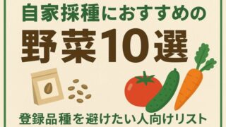 家庭菜園 自家採種におすすめの野菜10選|登録品種を避けたい人向けリスト 家庭菜園で採れた種を安心して保存・譲りたい人へ。登録品種を避けるコツ、自家採種と相性の良い固定種・在来種のおすすめ野菜10選、採種と保存のポイントをわかりやすく紹介します。 2025.12.28 家庭菜園