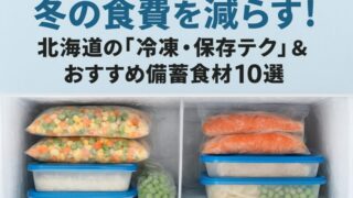 ひとりごと 冬の食費を減らす!北海道の「冷凍・保存テク」&おすすめ備蓄食材10選 冬の光熱費と食費がかさむ北海道。この記事では、冷凍保存のコツや長持ちする備蓄食材、吹雪や停電時にも役立つ「食の備え」を紹介。冷凍庫を上手に使って、冬の家計をしっかり防衛しましょう。 2025.11.10 ひとりごと生活