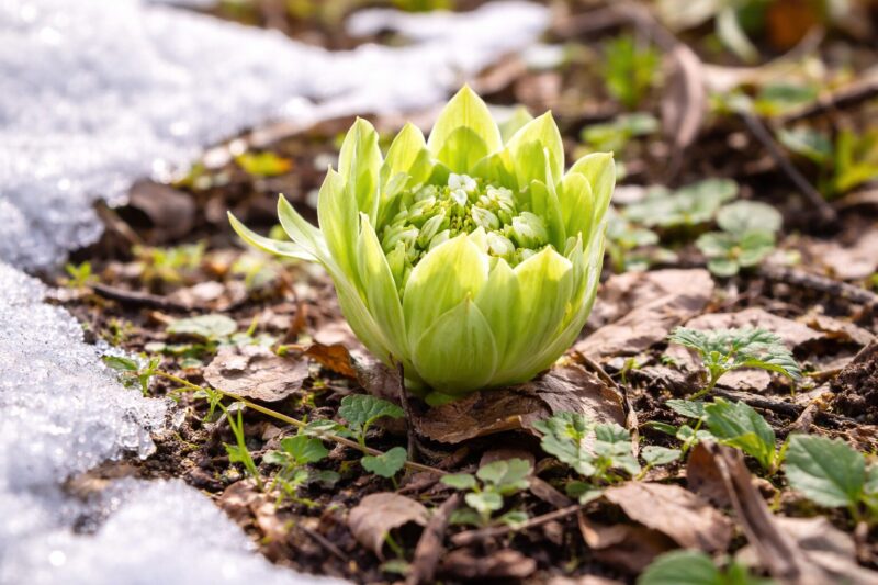 北海道の春は短いので、植物たちは雪がとけると一気に動き出します。