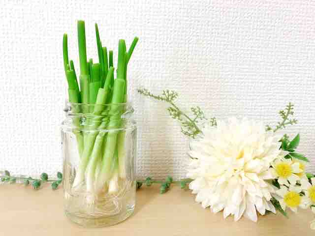 根元を3~5cmほど残して水に浸けておくだけで、数日で新しい芽が伸びてきます。