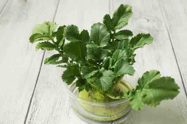 根元をカットして水に浸けると、1週間ほどで中心から新しい葉が出てきます。