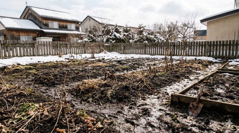 雪解け直後の土。それは「土」というより、「粘土と水が喧嘩している状態」です。